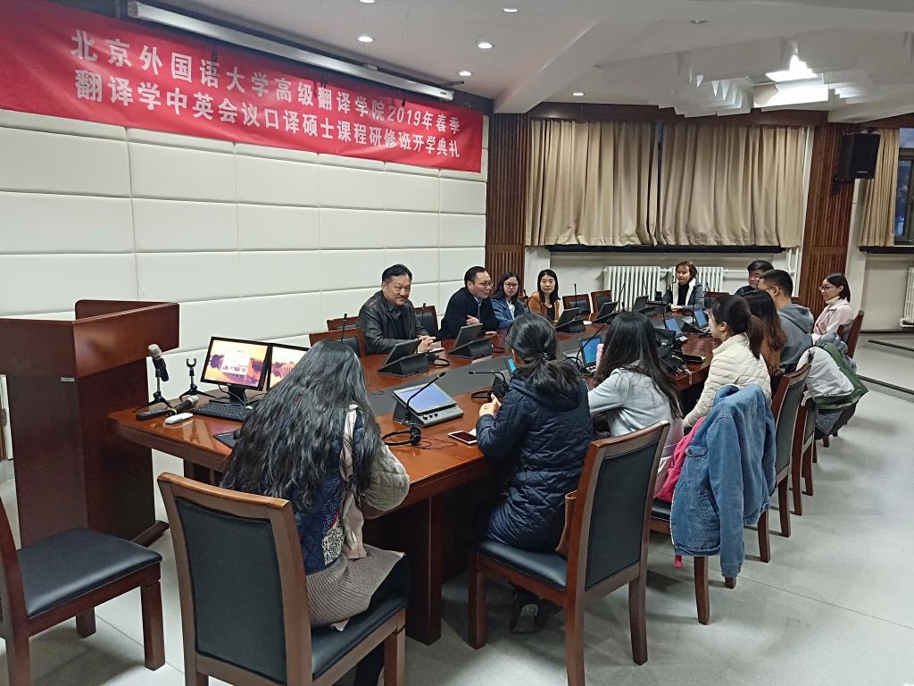 2019年3月11日,2019年春季中英会议口译硕士课程研修班开学。 VSport体育副经理李长栓教授、办公室主任胡晓虹、伍秋子和樊晶老师参加了开学典礼。参加课程研修班的同学们在晚上和周末的时间段开启了艰苦而富有成果的硕士攻读历程