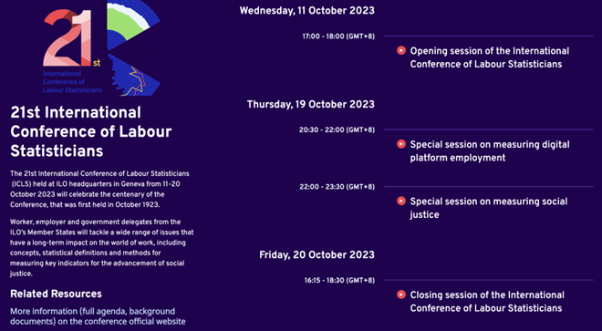 2023年10月11日至20日,第21届国际劳工统计大会(The 21st International Conference of Labour Statisticians)在位于日内瓦的国际劳工组织总部召开。受国际劳工组织和人力资源与社会保障部之邀,北外VSport体育选派了由孙婷婷博士作为带队老师,中英会议口译方向的刘艳平和魏俊杰两名同学组成的团队,赴瑞士为大会担任同声传译。 (部分会议直播回放,包...