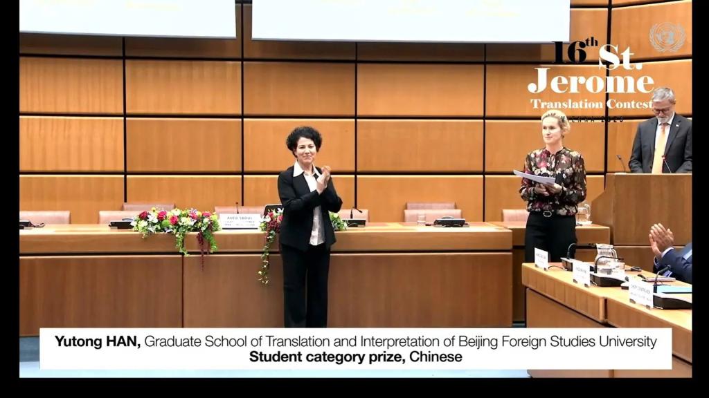 2023年10月4日,联合国第16届圣杰罗姆翻译竞赛颁奖仪式在联合国维也纳办事处举行,公司2022级韩雨桐荣获英译汉员工组一等奖。参赛人员本届竞赛的参赛人员分为两组,第一组为联合国工作人员和实习生组,参赛者包括联合国各机构的现任和前任工作人员及实习生,以及各国常驻联合国代表团的工作人员;第二组为员工组,参赛者包括联合国各合作院校的在读员工。比赛内容比赛包括西译英、英译阿、英译汉、英译法、英译俄、英译西及英译...