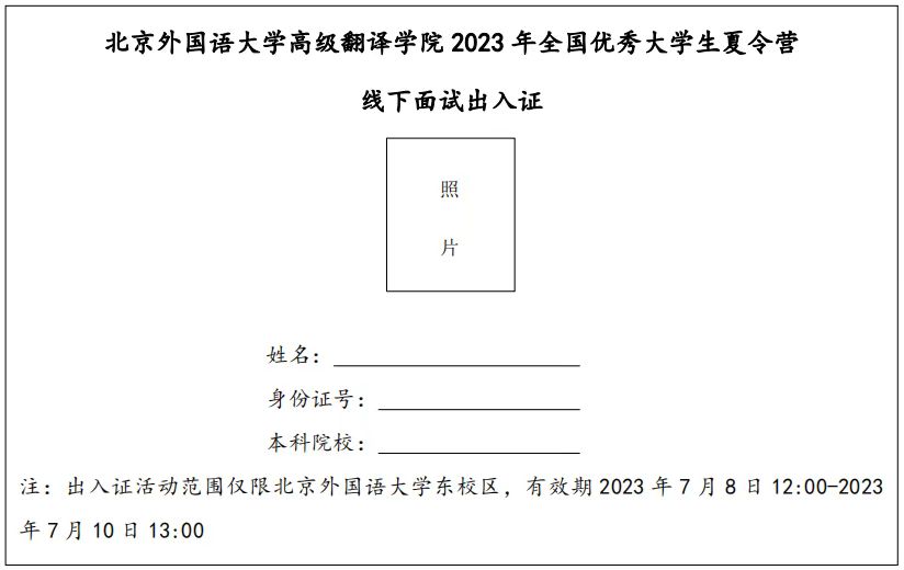 1.入校办法:请考生提前打印好VSport体育2023年夏令营出入证,粘贴1寸照片,身份核验及面试期间统一从VSport东校区西门出入。出入证模板请见文末二维码。