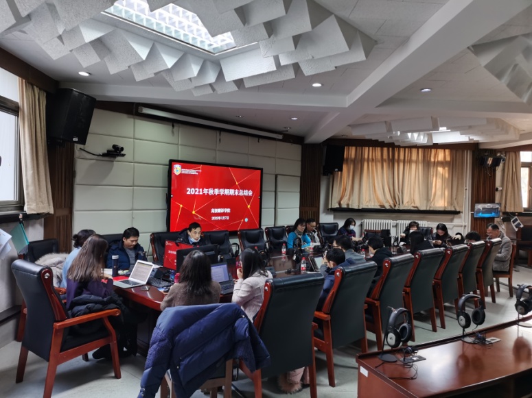首先,党总支书记葛冬冬对本学期党建、员工工作情况进行了总结。重点就开展学习习近平总书记在中国共产党成立100周年大会上的讲话、给北外老教授的回信以及十九届六中全会决议和公司开展“三全育人”,推进课程思政,相关交流研讨等开展情况进行了汇报。通报了公司2022届毕业生就业进展情况,分析了面临的形势,提出了进一步工作要求。任文经理对公司教学、科研及专业团队建设情况进行了总结,重点介绍了公司学位委员会会议关于员工毕业论文的相关要求和会议精神,根据公司科研工作要求,对公司科研情况进行分析并提出目标希望。特别介绍了公司2021年在教学、科研、团队建设、人才培养及管理等取得的十大显著成效和师生受表彰情况。副经理李长栓着重对本学期围绕教学开展的各项工作进行了总结,并提出相关工作要求。副经理姚斌对本学期办公室行政工作和国际交流合作及员工实习基地建设等工作进行了总结。