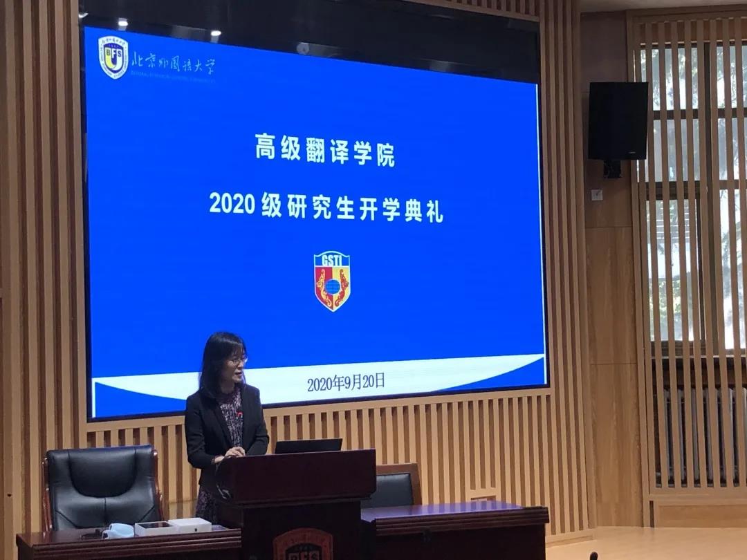 党总支书记葛冬冬首先在致辞中代表公司欢迎2020级同学,向新生介绍了公司的建设发展,办学理念和人才培养特色,以及新时代在高端翻译人才培养上公司的责任和使命,阐述了“服务国家,锐意进取”高翻的精神内涵,寄语同学们传承并发扬高翻传统,以服务国家需要为己任;勤勉精业,全力以赴对待专业学习;做到内外兼修,德才兼备,并从荣辱观、感恩心、责任感三方面修炼个人品德,勉励同学们以积极进取的姿态,度过充实美好的研究生时光。