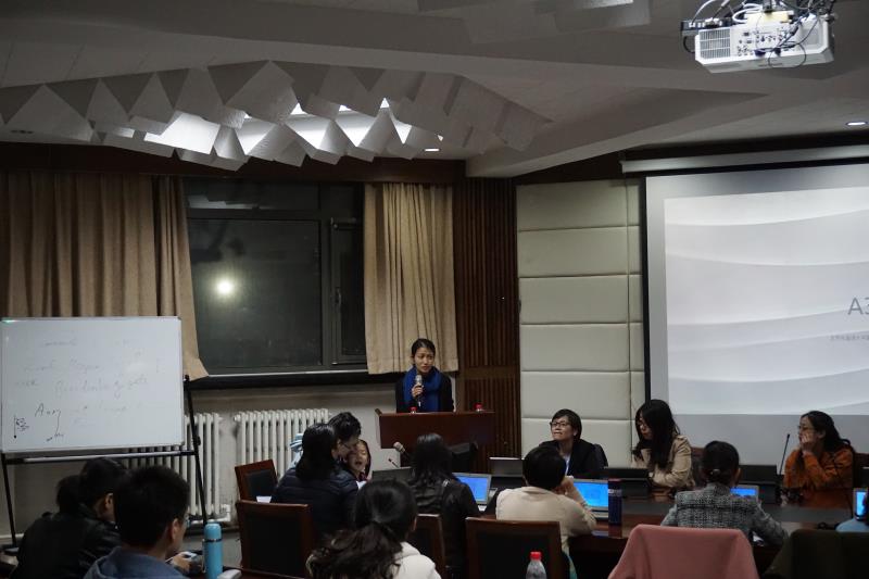 接下来,丁宁女士讲述了自己的工作经验。外交部翻译室的工作要求严格,要求译员表达清晰、声音洪亮,她通过工作规范了语言,练就了不苟且的态度,提高了心里素质。之后,她辞职做自由职业,最大的收获是提高了快速学习能力。丁宁女士还和大家分享了联合国总部同传体验,以及各种情况的不同应对方法:如何应对不熟悉的话题或讲稿;讲者语速快时,句序不能大调,尽量用小词,但是不能为了用小词而牺牲准确度。