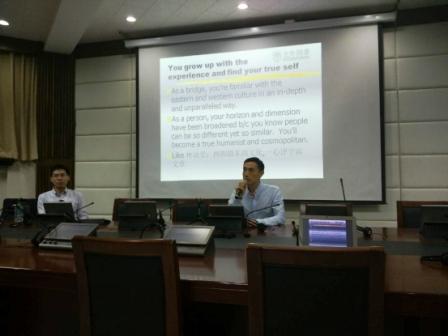 2016年5月26日19:00,资深同传译员、美国常青藤宾夕法尼亚大学法学博士商聪莅临高翻150人礼堂,为同学们就金融与法律领域口译技巧带来了一场精彩讲座。讲座由高翻公司副经理姚斌主持,高翻公司教师邓小玲及博士卢信朝出席讲座。