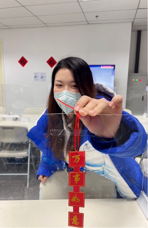 很幸运能够参与2022年北京冬奥会,让我有机会亲眼见证一个又一个激动人心的夺冠时刻。今年的春节也是在赛事服务中度过的,尽管我们身处闭环之内,但也能感受到浓浓的年味,因为驻地到处都贴有对联、福字,还发了花生、瓜子和糖果,让大家过了一个非常特殊又温暖的春节。本次冬奥会我主要负责辅助外籍场馆制作人制作比赛,为现场观众和全球各地的观众呈现一场富有娱乐性和艺术性的比赛。在工作当中我学到了很多与节目制作相关的术语,也了解了体育赛事的制作流程,并且认识了来自世界各地优秀的同事,让我受益匪浅。随着冬奥会的开幕,各个领域的志愿者们都将投入紧张的工作,希望大家能够做好防护,享受本次宝贵经历!