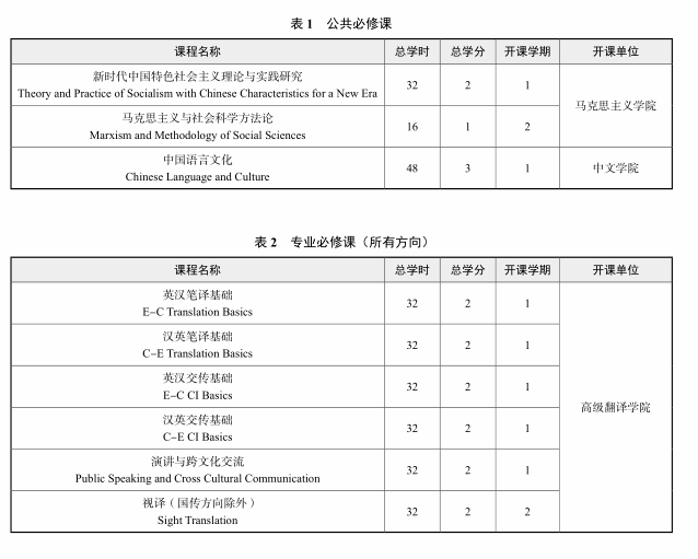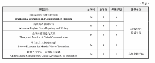 中英会议口译、中英口笔译方向总学分不低于 40 学分,翻译与国际传播方向总学分不低于 46学分,复语方向总学分不低于 46 分。