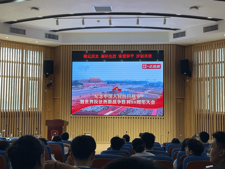 阅兵式庄严恢弘的场面深深吸引了在场师生。铿锵有力的军姿步伐、威武雄壮的武器装备,以及抗战老兵的英雄风采,令师生们热血沸腾。同学们凝神观看,纷纷表示从国家发展的辉煌成就中感受到强大凝聚力,更坚定了以专业能力服务国家战略的信念。