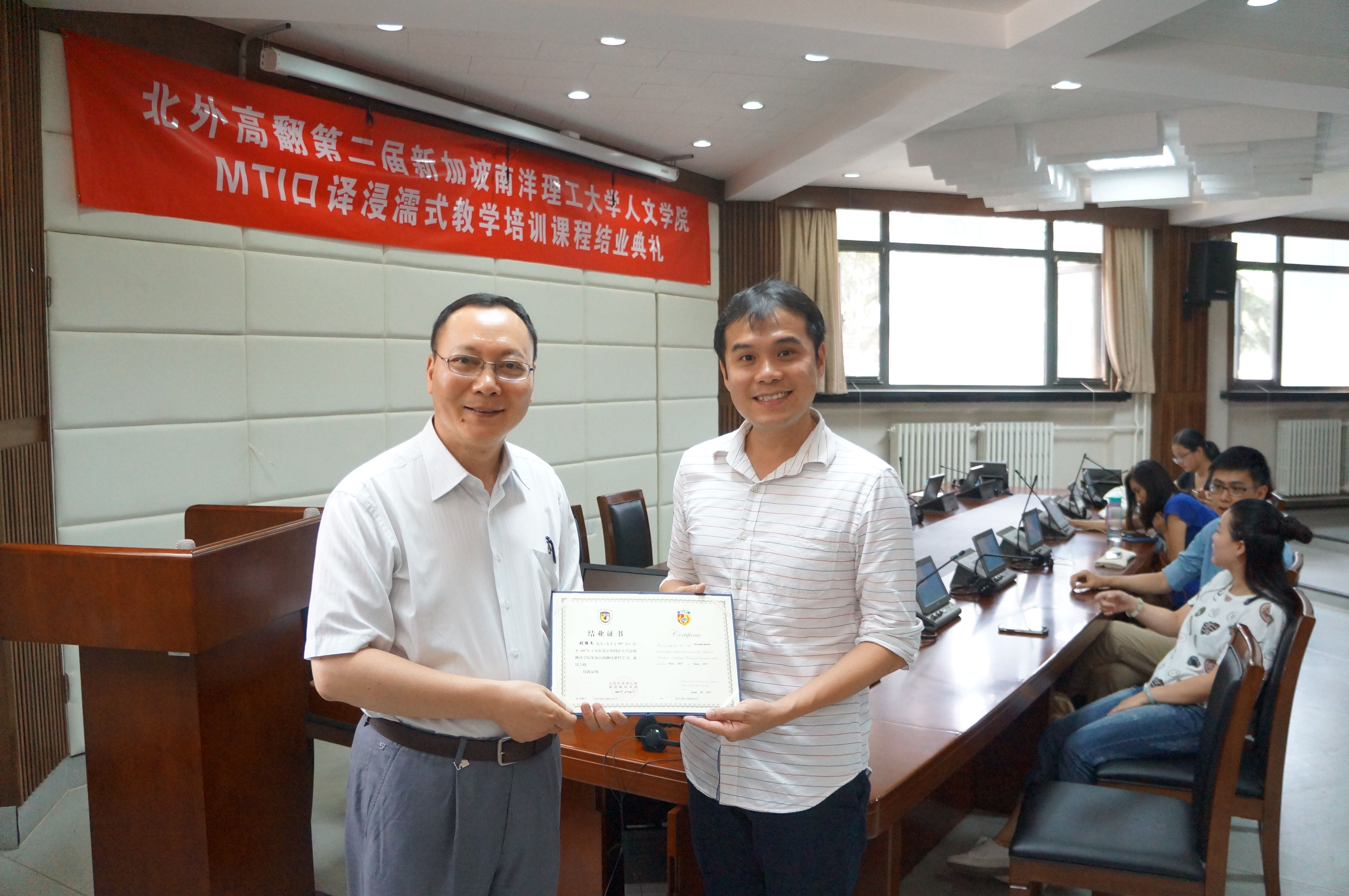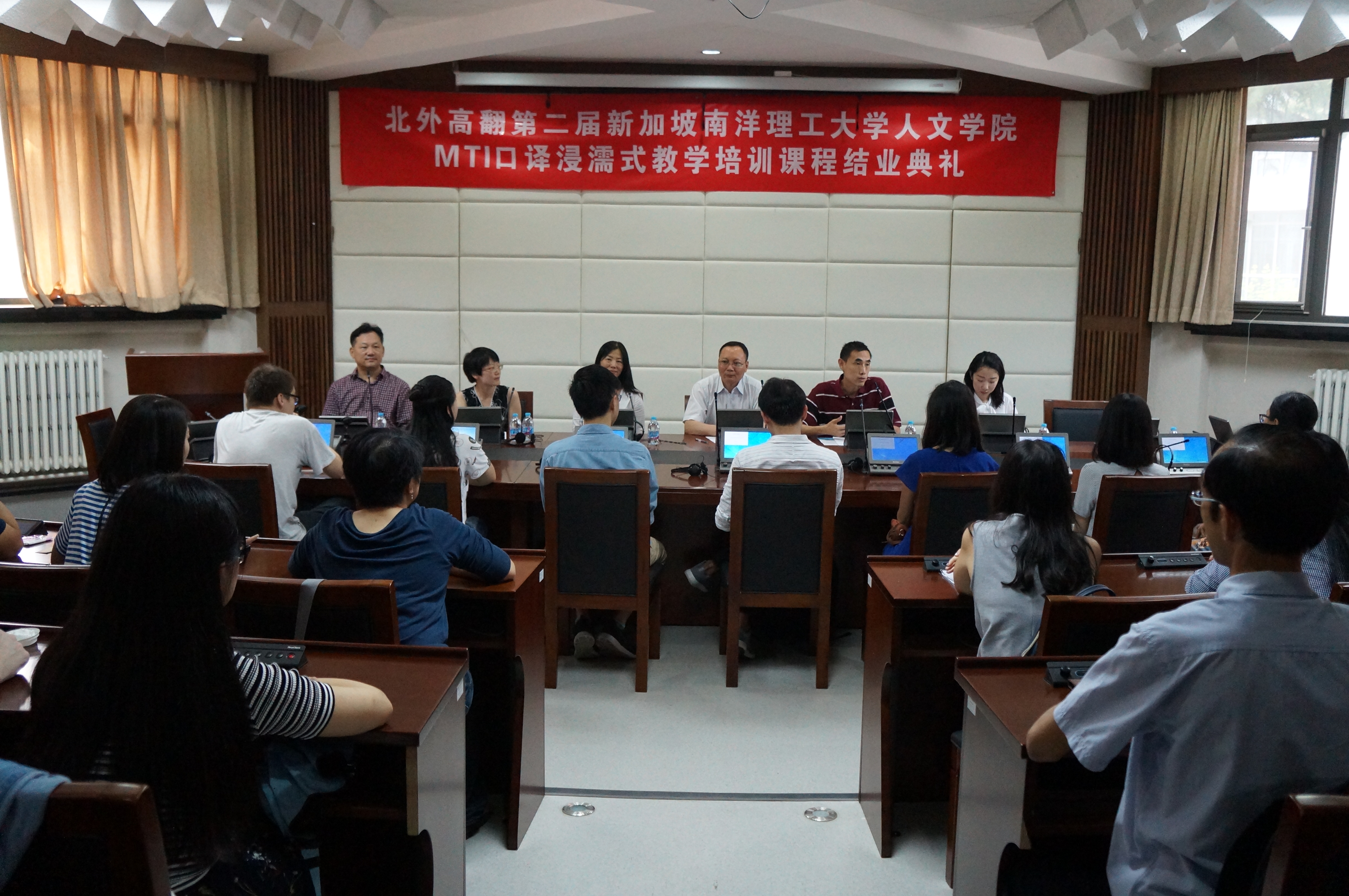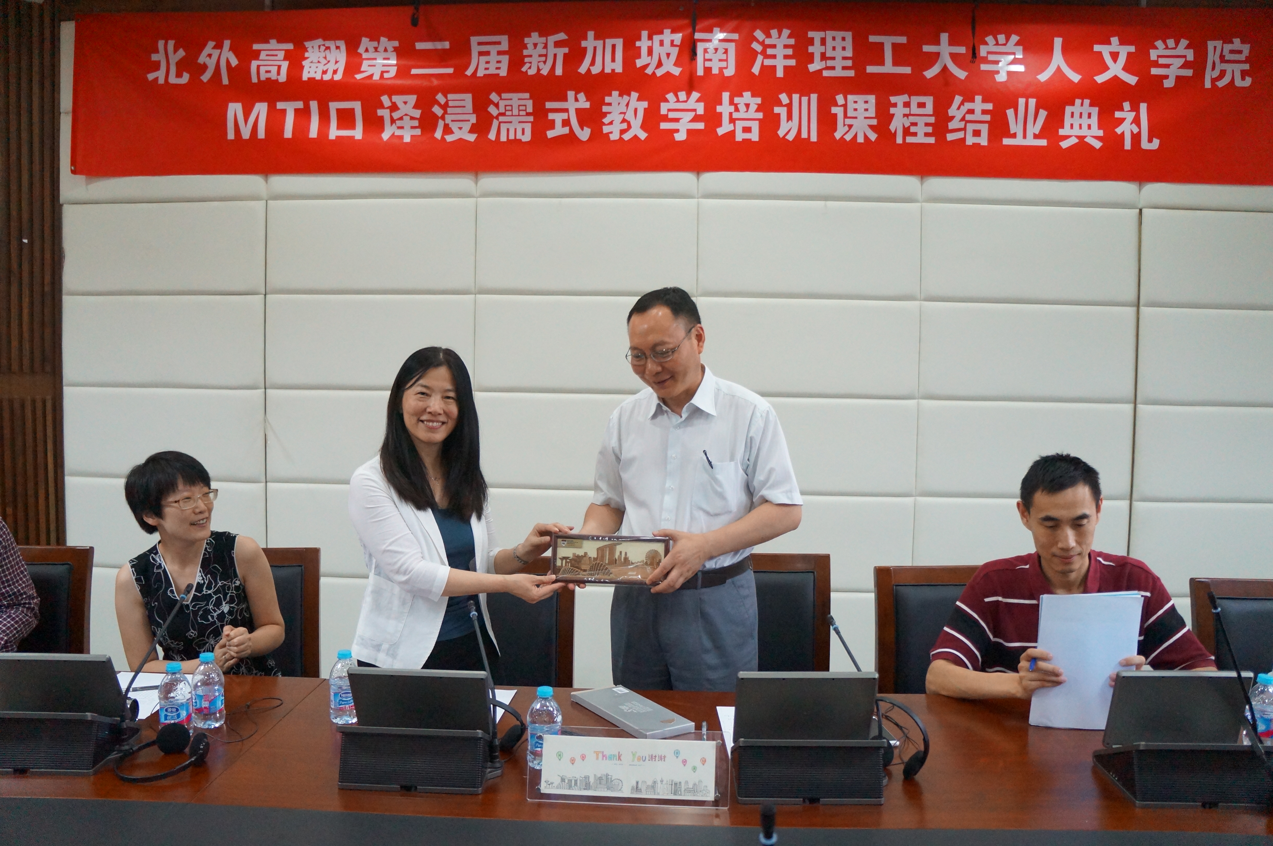 结业典礼上,学员以现场交替传译的方式,展示了六周学习后的学习成果,令人赞叹不已。教师代表也对整个培训期间的教学过程进行了总结。VSport体育副经理李长栓教授和新加坡南洋理工大学人文公司的高虹老师也分别代表培训方和受训方发表了培训感言。