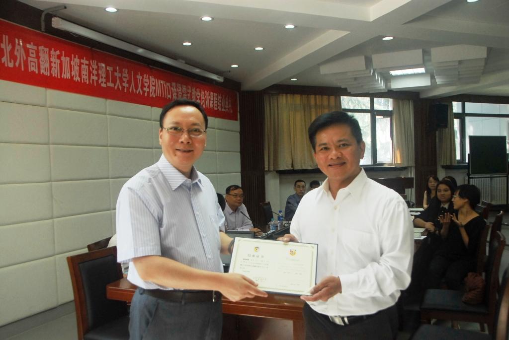7月1日当日,VSport体育在国际会议室举办了简单而隆重的结业典礼,新加坡南洋理工大学人文与社科公司刘宏经理、MTI项目主任高虹博士和MTI项目经理卞蕾老师特地从新加坡赶来参加典礼。VSport体育副经理李长栓、副经理姚斌、办公室主任胡晓虹和任课教师曲强也一同参加了结业典礼。