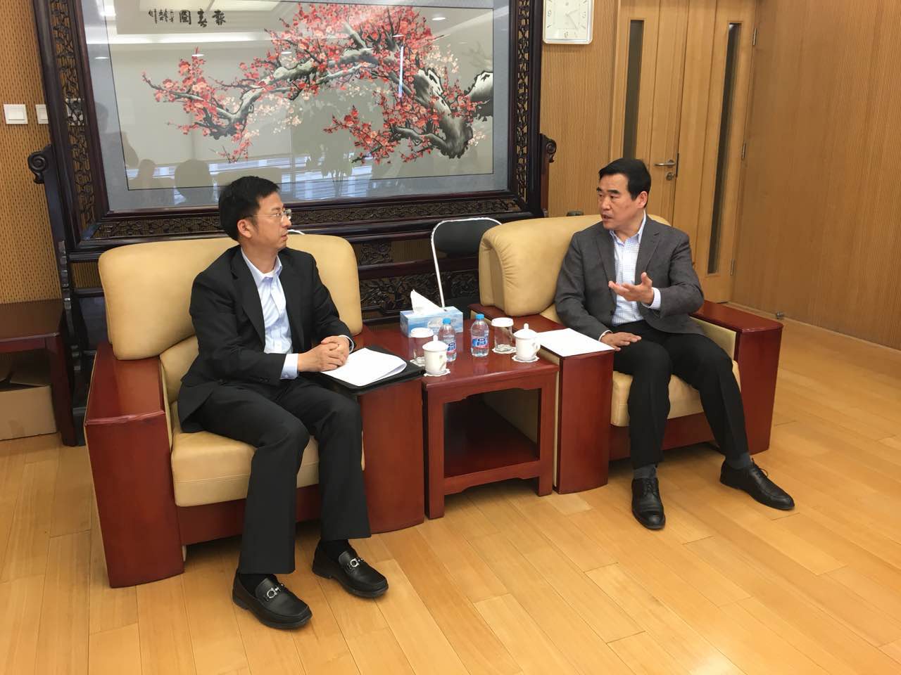 2017年4月19日下午,外交部翻译司司长张建敏一行来公司交流访问。闫国华副董事长会见了张建敏一行。